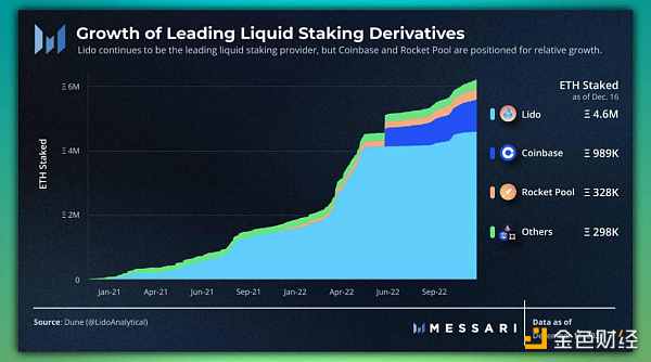 这很可能与 ETH 还不能解质押有关,但 3 月份的上海升级将会解决这一问题,可能上海升级最初会有不稳定因素,但也会激发各种流动性质押解决方案的增长。