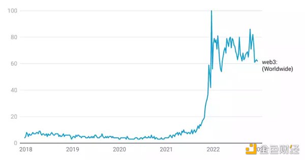 Crypto 和 DeFi 在 2022 年深陷熊市,但 Web3 方面的需求刚刚才开始获得关注。在过去的 12 个月里,Web3 相关的搜索与 2021 年底的峰值相比,一直保持在 30% 以内,下一个上升趋势可能正在到来。