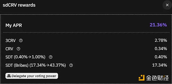 质押者得到的是 3CRV,CRV 和因贿赂而被转化为 SDT 的奖励。