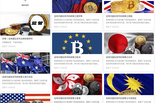 为此,郭律师团队收集并整理了全球主要国家和地区的虚拟货币监管政策,加起来有上千页之多。这些资料郭律师也会逐步整理并进行分享,同时也希望有越来越多的法学专家、法官、检察官、警官、律师等法律人士,以及从业者、爱好者等关注区块链和虚拟货币的人事一同参与到这项“为爱发电”的研究中来。