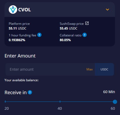 你可以获取与 CVI 指数挂钩的 CVOL 代币。通过它们的铸造网站或者在 SushiSwap 上购买,如果那里更便宜。