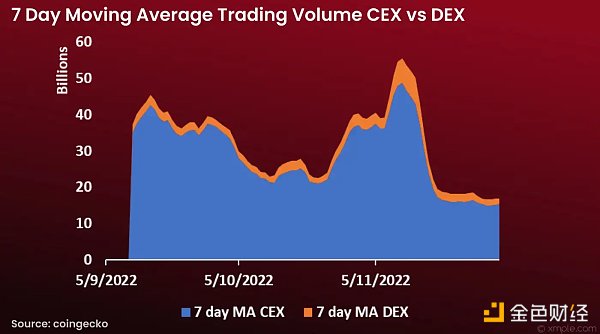 显然,在市场份额方面,DEX 交易量有所增加。然而,增加并不显着,因为只有一小部分增加,但现在又慢慢减少了。用户仍旧使用 CEX 进行交易吗?
