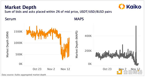 SRM 和 MAPS 的深度也出现了巨大下降,做市活动受到 Alameda 影响