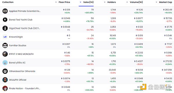 24小时NFT交易量、交易量前十项目 数据来源:Coinmarketcap
