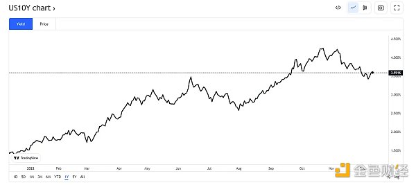 利率也有可能已经见顶。这是 10 年期国债,目前利率为 3.59%,在大约一个月前曾高达 4.25%。