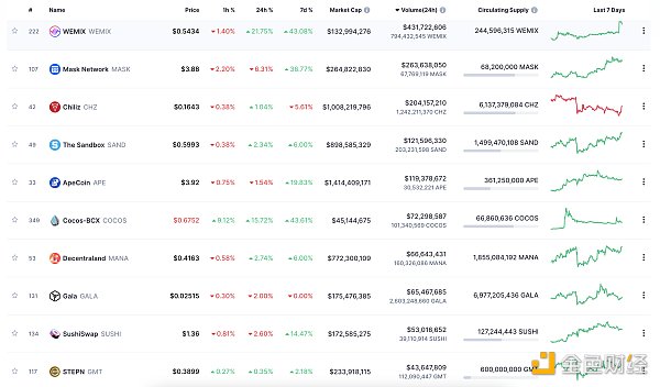 24小时NFT交易量、交易量前十项目 数据来源:Coinmarketcap