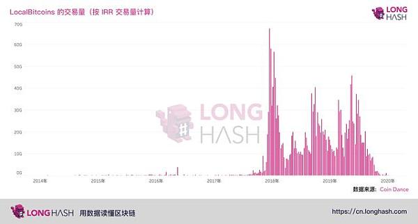 根据其相关报道,可能由于美国制裁或其他不知名的原因等等,LocalBitcons 在 2019 年 5 月份之后就不再为伊朗地区提供服务,但似乎并没有阻止伊朗在场外交易比特币的热情。当时,只要是位于伊朗的交易商就被禁止在该国境内使用 Localbitcoins,该网站的伊朗部分显示一条短消息,表明该交易所“目前无法使用”。但从图表上来看,反而交易量形成了一个相对高点。但从 2019 年 11 月开始,随着伊朗切断了本国的互联网,导致交易量迅速下滑。