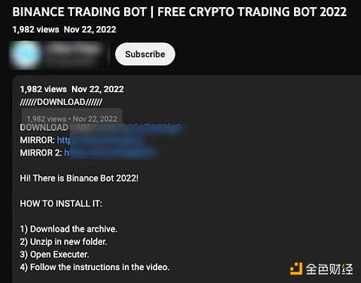 系统会提示用户下载恶意文件并按照提示操作。通常,想要在币安交易所自动交易的用户会有一个 API 私钥。这个视频诱用户使用他们的交易机器人,并要求用户放弃他们的 API 私钥和密码。一旦用户从而入套,子将能够在他们的终端接收用户的凭证,并使用用户的资金进行交易。