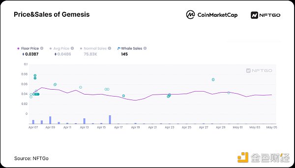 Gemv2品牌升级为OpenSeaPro,向2023年3月31日之前使用过Gem的用户空投“Gemesis”NFT,用户可在5月4日之前免费领取。Gemesis地板价普遍保持在0.03-0.05ETH之间。
