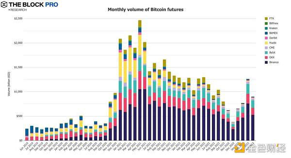 9、在加密期货方面,四月比特币期货未平仓量下降1%,而以太坊期货未平仓量则出现上涨,涨幅为8/2%;在期货交易额方面,比特币期货4月交易额下降了28.5%,跌至9010亿美元。