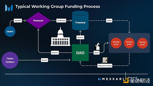 随着 DAO 的发展,许多 DAO 都采用了类似的工作组结构来有效地分配任务。工作组的名称、职责、贡献者和术语各不相同。但一般来说,每个工作组都是一个精简、自治的贡献者小组,专注于 DAO 中的预定任务。对于他们的贡献,DAO 用社区国库的资源支付工作组的报酬。