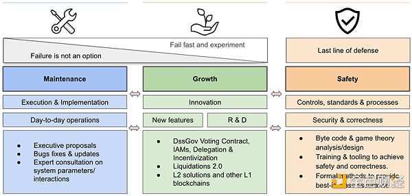 PE 部门由 16 名全职员工组成,其核心职责“是扩展 Maker 协议的功能,协助维护和运行现有智能合约,并确保协议设计和实现的安全性和正确性。”