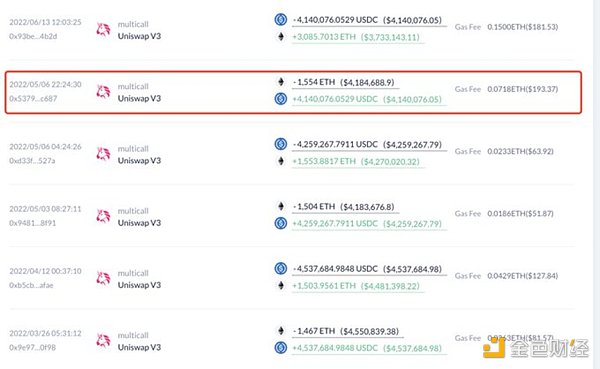 然后在2022年5月6日,这些地址以ETH的价格出售USDC。