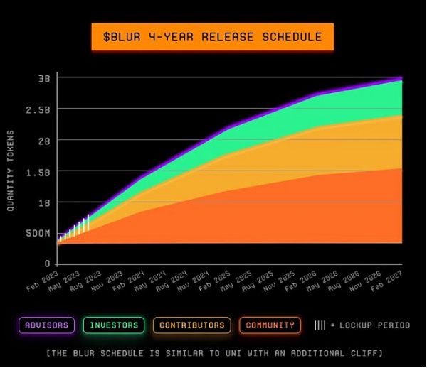 而到今年11月时,Blur诞生的第二年到来,社区金库又可增加3.51亿枚BLUR。
