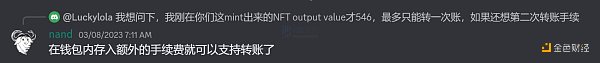 对此,官方在 Discord 的答复是 「在钱包内存入额外的手续费就可以支持转账」。