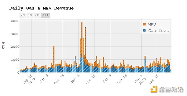 推理 MEV 作用的一种方法是通过链的经济安全角度来看待它。一般来说,这被看作是“保护”该链的价值,被质押的资产数额,或者在比特币的情况下,进行 51% 的攻击所需的资金数额。MEV 是其中的一个重要组成部分,因为它提高了验证者/矿工的收益,因此允许更大的经济价值被质押进来。
