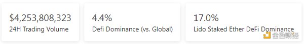 2、过去24小时去中心化交易所的交易量42.53亿美元