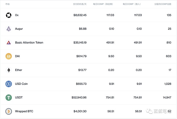 Compound上获益最大的挖矿代币是USDT和USDC,占据了绝大多数的份额。