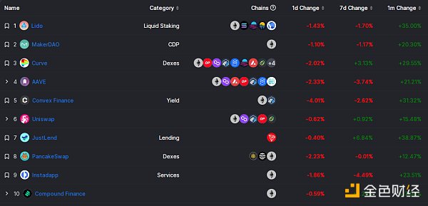 DeFi项目锁定资产前十排名及锁仓量 数据来源:defillama