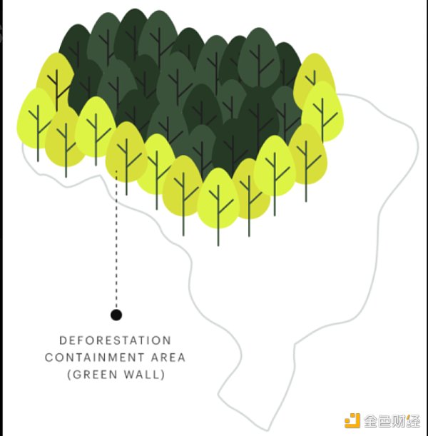 亚马逊 NFT 代表一片亚马逊雨林。出售这些 NFT 的收益将用于名为 Green Wall 的项目,该项目将打击该地区的森林砍伐。Green Wall 的使命是保护雨林的受威胁边界。白皮书称,拯救亚马逊——面积达 6 亿公顷——的成本将比人们想象的要低得多。由于大部分的森林砍伐不是来自于自然灾害,而是来自于人类活动,通过建造一堵墙来保护森林的边缘,在环境和经济上都是合理的。