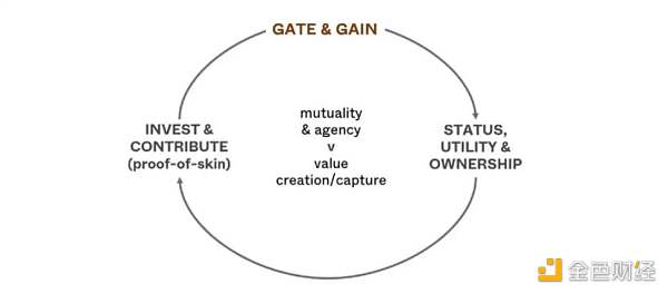为了使社区蓬勃发展并建立吸引力,他们需要能够控制和分层对社区活动和福利的访问,并设计激励措施,使成员表现出理想的行为并为社区的更大目标做出贡献。Gate 是指社区决定谁可以访问社区的哪些部分。Gain 是指提供给表现出理想的行为并对整个社区的福祉做出积极贡献的成员的激励。