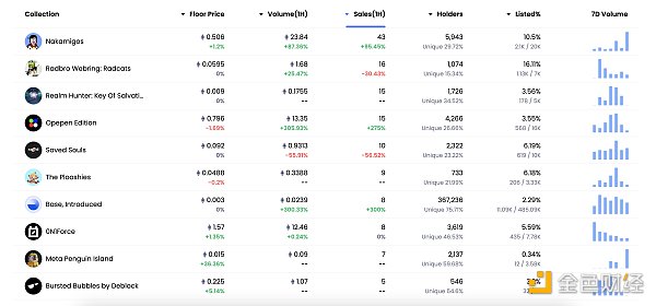 24小时NFT交易量、交易量前十项目 数据来源:Coinmarketcap