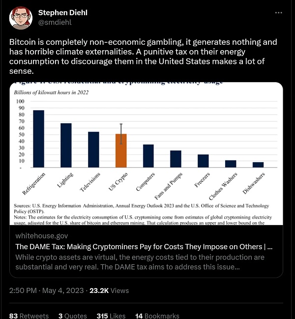 “在对加密货币进行了深入的研究之后,任何有理解能力的人都可以得出一个结论——它需要被彻底摧毁,因为这是一个巨大的局。”
