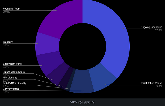 VRTX是Vertex Protocol的治理代币,总供应量为10亿枚,其中,90.08%的代币将在5 年内分发。