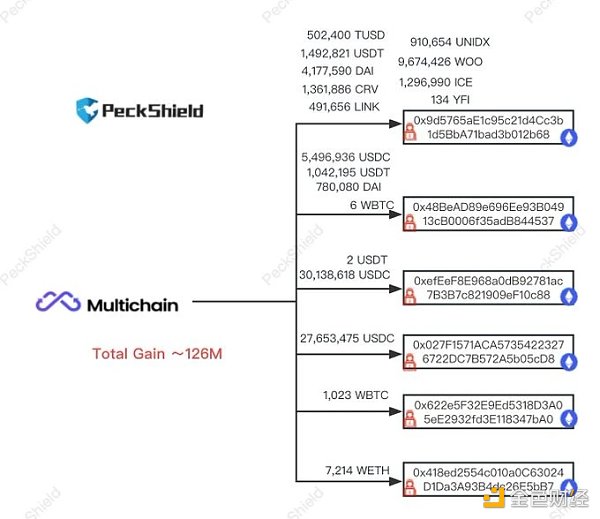 此外,鉴于 Multichain 在日前的官推披露中称联合创始人 Zhaojun 的姐姐也已失联,所以其于 7 月 9 日出于资产保全目的转移至两个 EOA 钱包(0x1eed63efba5f81d95bfe37d82c8e736b974f477b;0x48bead89e696ee93b04913cb0006f35adb844537)的约 1.51 亿美元资金后续也存在变数,退一步说,即便其不会丢失资金控制权,短时间内大概率也较难处理该笔资金,所以暂时也可将该部分资金视作缺口。