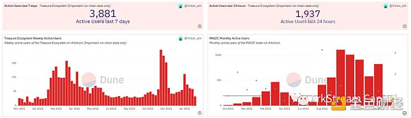 大则Steam,小则4399,由于轻资产重运营,分发平台模式成为了一众去中心化游戏平台的创业模式。以TreasureDAO为例,从Loot生态的第一个收益协议Magic,到Arbitrum上最大的去中心化游戏平台,几经寻觅,TreasureDAO展现了一段web3的魔法,现在已经成为了分发平台模式的代表。