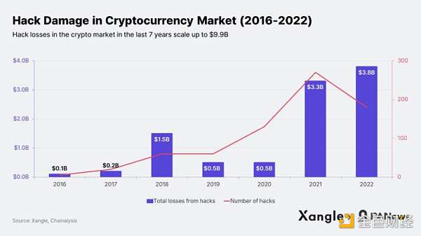 随着以太坊成为加密货币领域的主要组成部分,“EVM 兼容性”已成为一个强有力的叙述。事实上,只有少数非 EVM L1 不使用 Solidity,即 Rust 上的 Solana、Cosmwasm 上的 Cosmos、Clarity 上的 Stacks 以及 Move 上的 Sui 和 Aptos。然而,EVM 环境和 Solidity 容易受到攻击已经不是什么秘密了。过去几年中,许多黑客攻击让此类漏洞显现。根据 Chainalysis 的数据,从 2016 年到 2022 年,过去七年里,黑客攻击给加密行业造成了近 99亿美元的损失。
