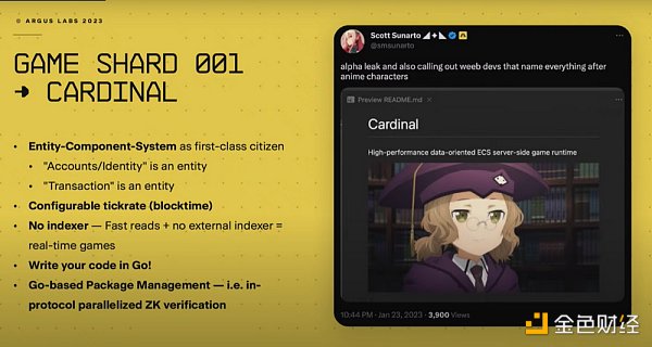 我们在游戏分片之上构建了各种游戏,比如一个 Agar.io 的克隆,这在传统上是不可能的。我们也使用了一个混合模型,你可以在 solidity 上使用现有的游戏引擎框架,并将其与 World Engine 结合。未来由你来决定。你可以使用我们的 cardinal 堆栈,做一个混合,或者构建你自己的游戏分片。这就像是全链游戏的 Kubernetes,一个你的游戏的混合和匹配乐高。
