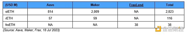 随着建立了可观的流动性基础,stETH 的流动性护城河进一步增强,因为该代币的更多用途得以解锁。其中一个例子是将流动质押的 ETH 用作货币市场协议中的抵押品。流动性是评估资产是否适合用作抵押品的关键参数,只有具有足够的流动性深度,才能有效处理资产清算。因此,毫不奇怪的是,stETH 也是在货币市场协议中最广泛使用的质押 ETH 衍生品作为抵押品。