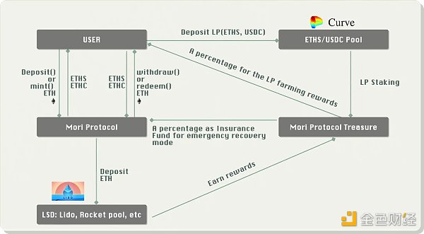 此前也有针对 ETH 为标的的稳定币,比如 LUSD,但这类稳定币在资本效率和可扩展性方面有着限制,在体量上落后于法币支持的稳定币。Mori Finance 议将 ETH 的波动性分为低波动性稳定资产和高波动性衍生资产。以 ETH 为例,用户可以根据自己的风险偏好选择持有高波动性的 ETHC(ETH Coin)资产和低波动性的 ETHS(ETH Stable)资产。
