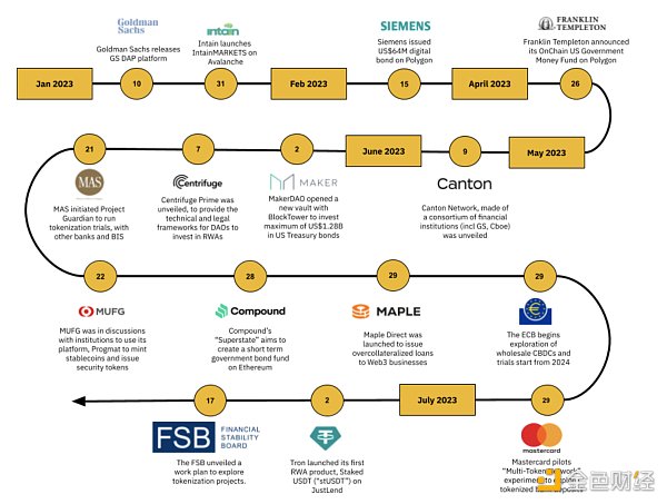2023年7月17日:金融稳定委员会公布了一个工作计划,以探索资产代币化项目,并评估其对金融体系的漏洞和政策影响。此举是在支付和市场基础设施委员会探索“代币化金融生态系统的中央银行的好处、风险和挑战”。