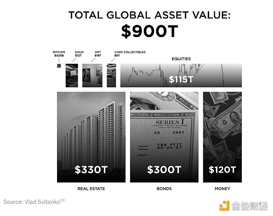 即使到了16万亿美元,代币化资产仍然只是当前全球总资产价值的一小部分,估计为900万亿美元(不到1.8%,而且没有考虑未来全球总资产价值的增长)。甚至可以认为真正的潜在市场是整个全球资产市场,因为任何可代币化的东西都可以在链上表示为RWAs。