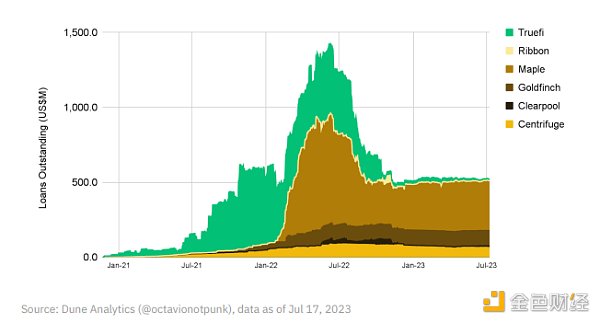 为了展示一些协议如何整合RWAs,本节重点介绍了一些市场参与者。除了以下协议,我们之前的报告中涵盖了Centrifuge和Goldfinch等。