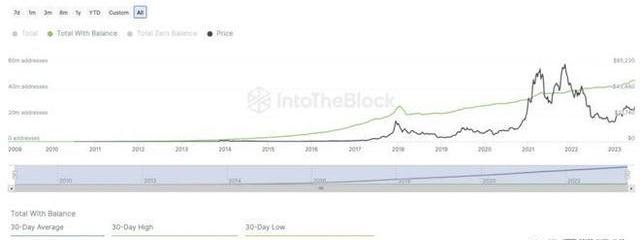 自二月份以来,网络上持有至少一枚比特币的地址显着增加。自今年年初以来,比特币已经大量积累。