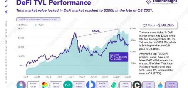 2021年第三季度的DeFi市场似乎是加密货币历史上的新一页。市场TVL终于超过了2,000亿美元,比第二季度高出24%,比第一季度高出147%,比2020年第三季度高出464%!