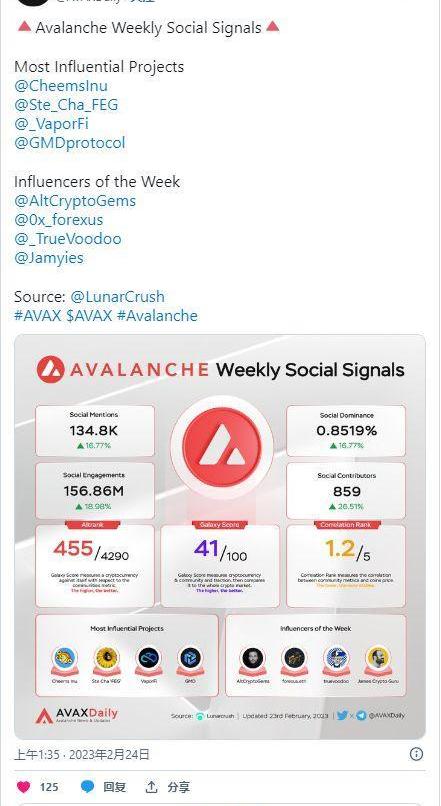 这些高价值交易导致Avalanche的社交指标激增,社交平台上的提及和参与度在过去一周增加了16%。