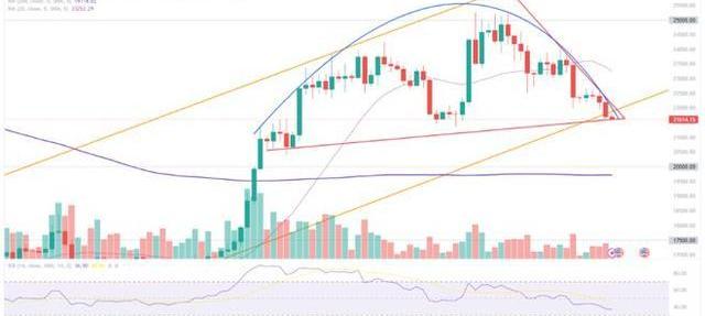 现在是比特币回撤的第17天,自从关键水平25,000美元被拒绝以来,它一直在不断发布更低的高点和更低的低点。