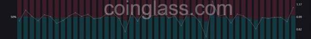 多头与空头比率表明,这一新未平仓头寸的情绪明显倾向于看跌——因为在过去12小时内,绝大多数交易者都转向了吃单卖出头寸。