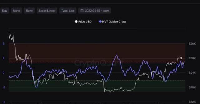 交易员和投资者也可能不得不为更多的影响做好准备。根据gigisulivan的CryptoQuant分析,BTC的价格在未来几天可能会进一步下跌。根据分析,BTC的NVT黄金交叉比率在4月25日达到2.235。