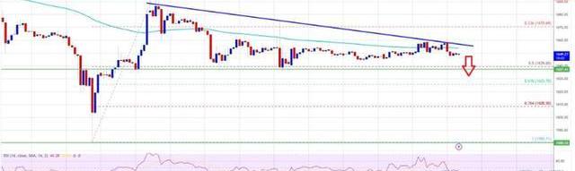 此外,ETH/USD小时图上有一条关键的看跌趋势线正在形成,阻力位在1660美元附近。如果价格保持在1,640美元支撑位上方,多头可能会尝试新一轮上涨。