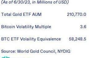 从美元的绝对数量上看,这些数字令人震惊——黄金基金的投资超过2100亿美元,而比特币基金的投资只有288亿美元。比特币的波动性约为黄金的3.6倍,这意味着在波动性等价的基础上,投资者需要的比特币数量将比黄金少3.6倍,以获取同样多的风险暴露。尽管如此,这仍会导致比特币ETF的需求增加近300亿美元。