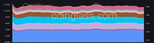 在所有交易所中,衍生品市场目前有112.1亿美元的资金可供交易,昨晚略有下降,原因是下行价格行动导致7.56亿美元的资金减少。