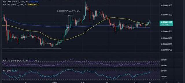 就SHIB的价格走势而言,它在过去五天保持稳步上涨。然而,多头正在失去动力。它现在正在努力克服0.000011美元的阻力。