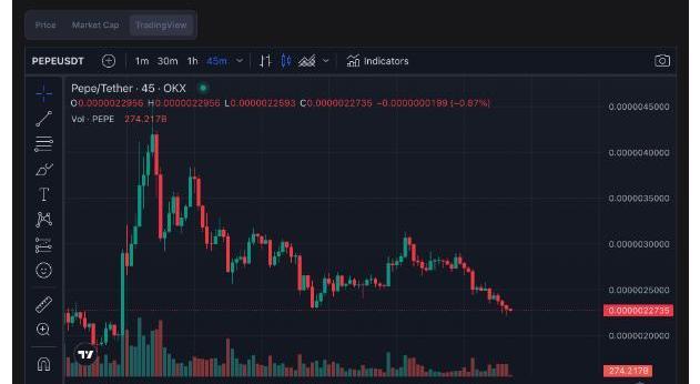 PepeCoin在过去24小时内的贬值已经达到了两位数。