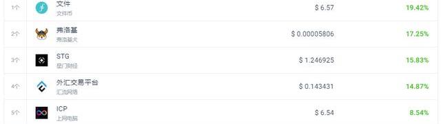 今天的涨幅最大的是Filecoin、FlokiInu和StargateFinance