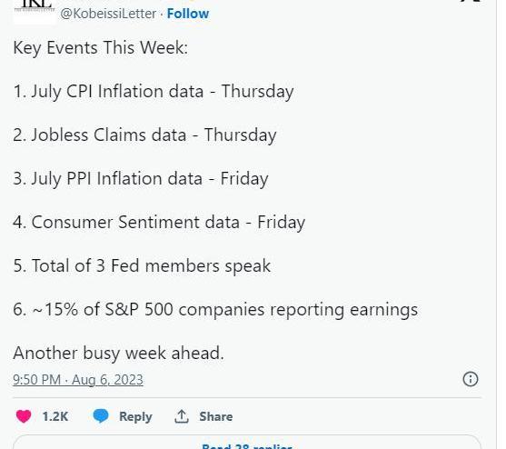 金融评论资源《KobeissiLetter》在所谓的“又一个繁忙的一周”之前预测,“本周的通胀数据应该会为美联储在9月份的行动提供更多信息”。